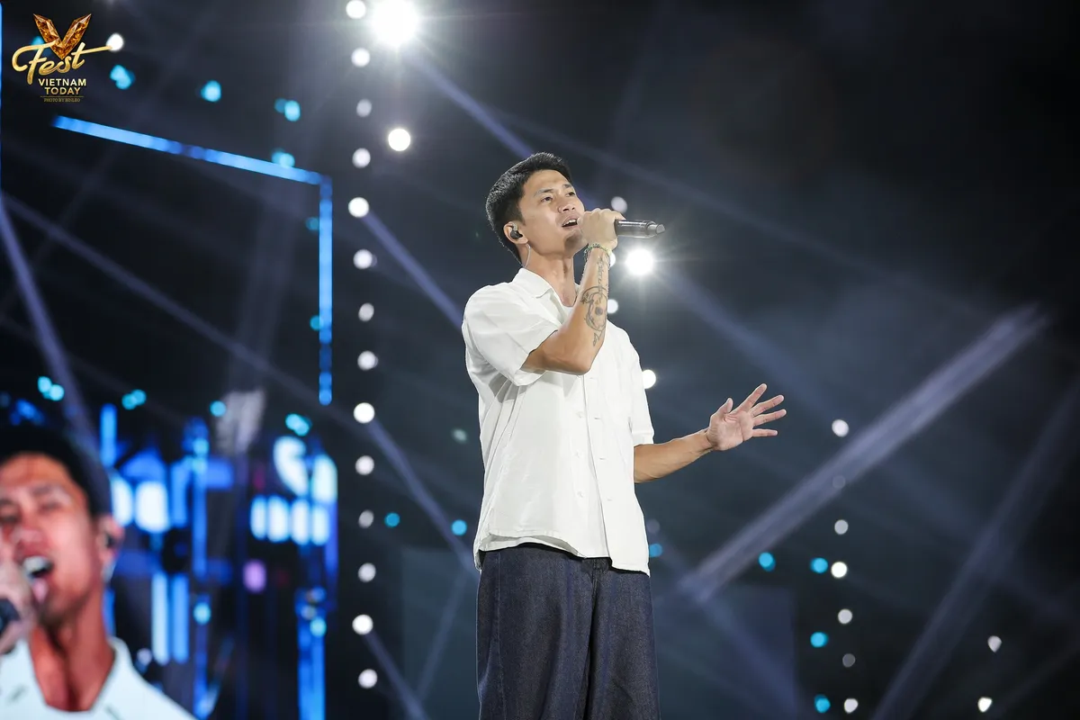 Trong phần trình diễn của mình, Nguyễn Hùng chọn mở đầu bằng ca khúc 5 ngón bàn tay mang tới sự mộc mạc, dịu dàng. Giai điệu nhẹ nhàng như thì thầm vào tai người nghe, mang tới những phút giây đặc biệt trong không khí bùng nổ của đại nhạc hội.
