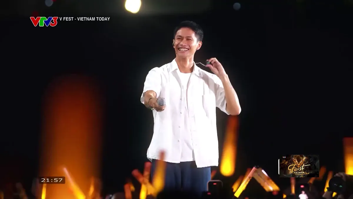 Sau 5 ngón bàn tay, Nguyễn Hùng bộc bạch: “Khoảng 1 tháng trước – khi V Fest tổ chức lần thứ nhất, tụi mình có nghe ca khúc của tụi mình được hát lên trong chương trình. Khi đó, tụi mình có một ước mơ: Ước gì mình cùng ca khúc của mình được đứng trên sân khấu này”. Ngay lập tức, khán giả đồng thanh: “Phép màu“. Nguyễn Hùng bắt nhịp cho 22.000 khán giả hoà giọng một đoạn nhạc ca khúc Phép màu.